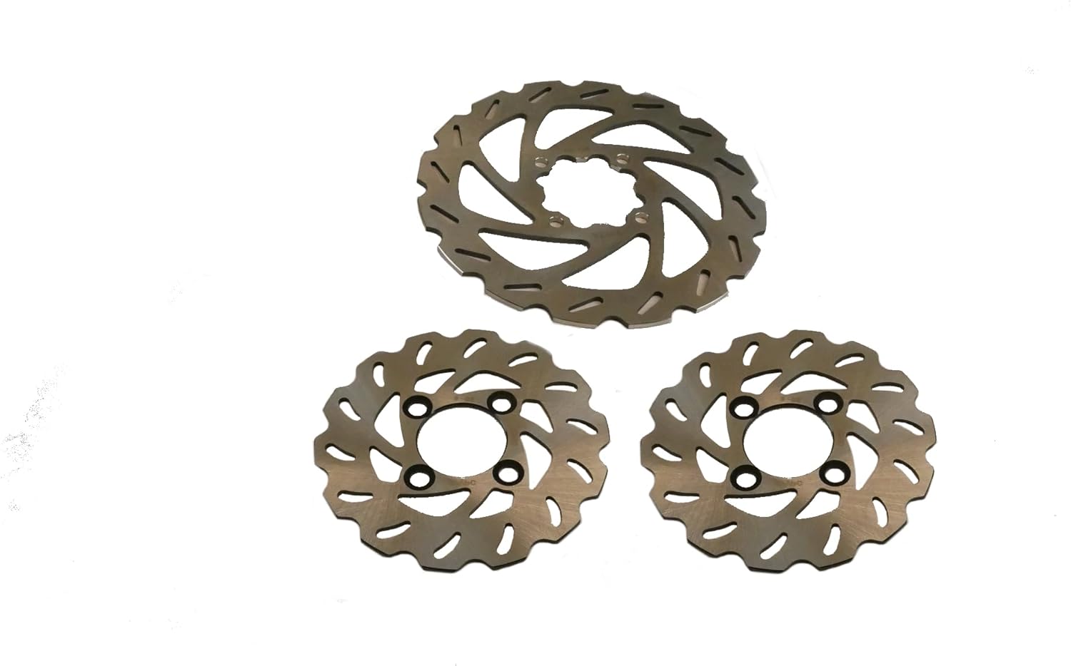 Fits the following Yamaha ATV models: 1990-2006 Banshee 350 2x4 ATV. Made from tempered stainless steel for optimal performance. Replaces OEM # (fronts) 3GD-2582T-00-00, 3GD-2582T-10-00, (rear) 5FK-2582W-00-00, 2GU-25831-50-00, 2GU-25831-51-00, 2XJ-25831-50-00. Set includes 3 brake rotors.