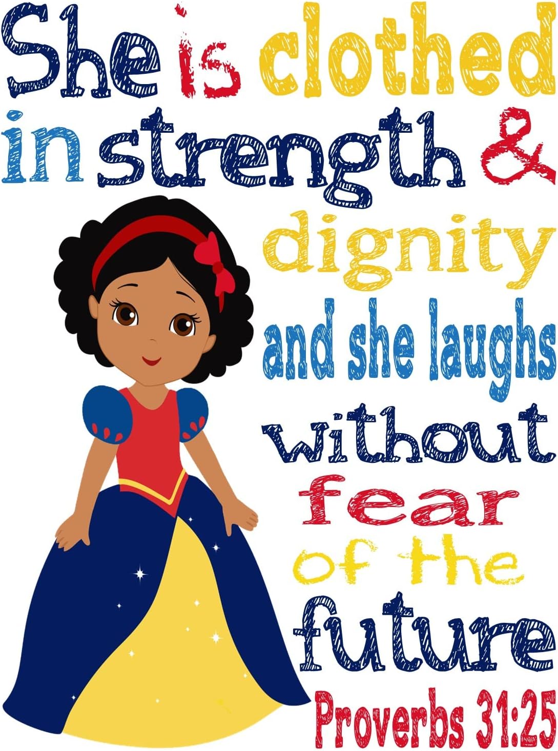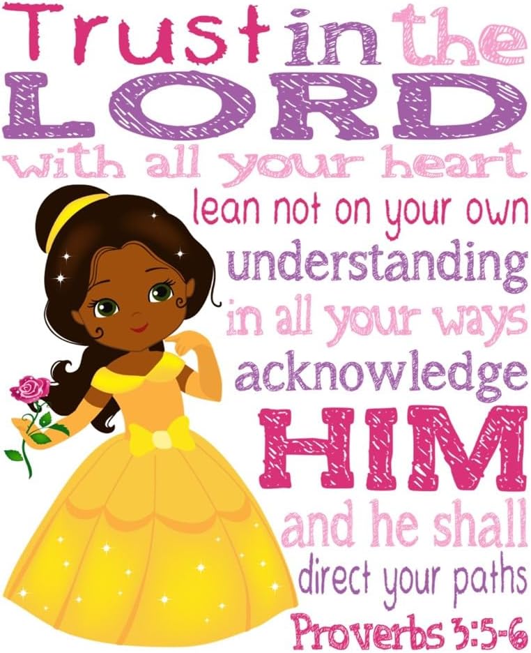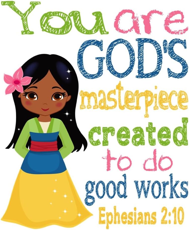 African American Princess Christian Nursery Decor Set of 9 Unframed Prints Mulan, Belle, Snow White Tiana and Cinderella