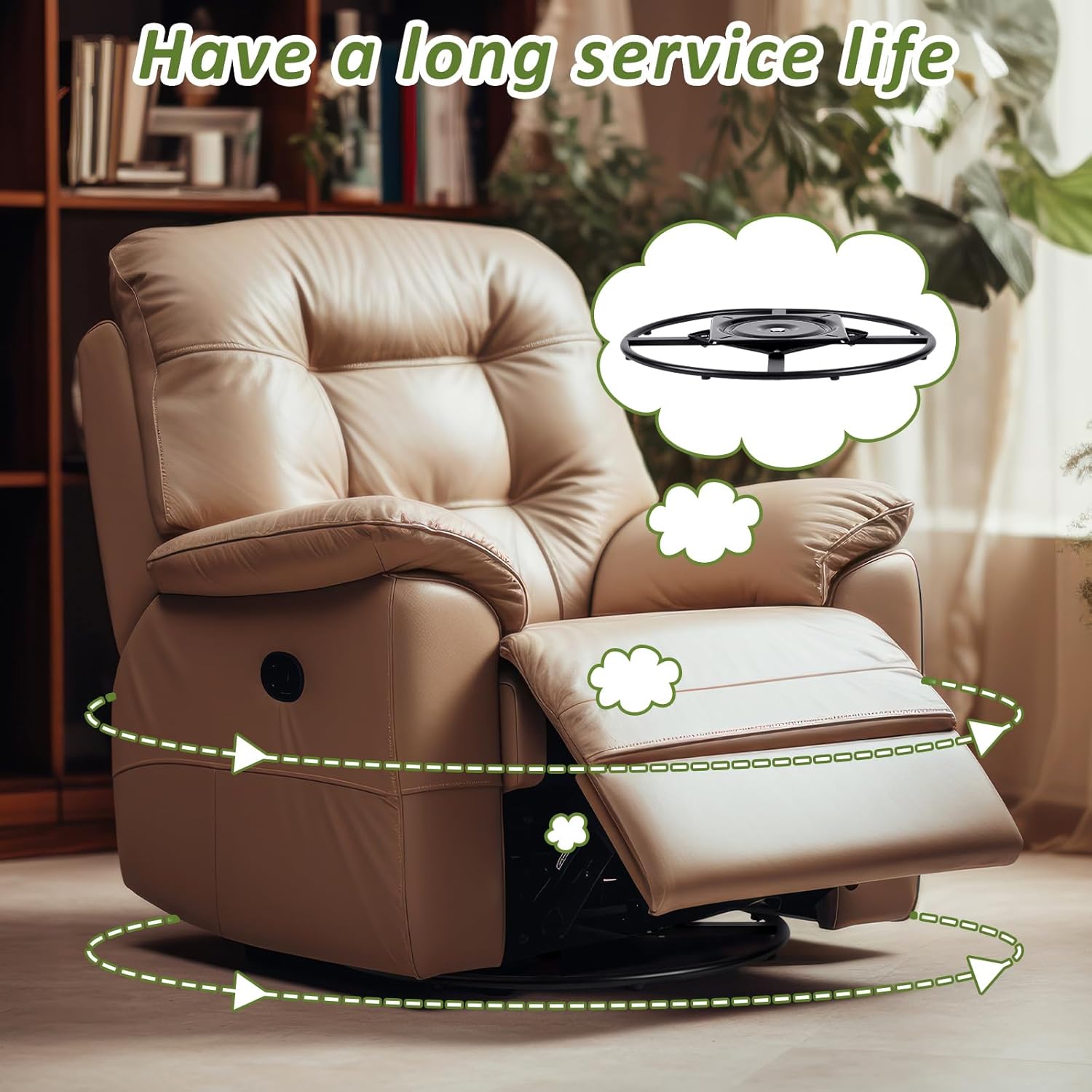 Features: Load-Bearing Ability: The 360-degree rotating swivel chair base can withstand a lot of pressure. It rotates smoothly with low noise, is not easily deformed or crushed, and has a long service life. Wide Application: This heavy-duty rotating recliner base fits recliners, sofas, etc. You can give it as a gift to your friends or family to expand its practicality. Specifications: Material: iron Color: black Size: 24 inches diameter Package includes: 1 x Recliner chair swivel ring base Notes: Manual measurement, please allow slight errors on size. The color may exist a slight difference due to different screen displays. Note: the painted finish of the swivel plate and ring are meant only as a protective finish and may have some scratching & marring from storage & handling. This is not meant as a visible finish as the part is normally hidden from view when installed.
