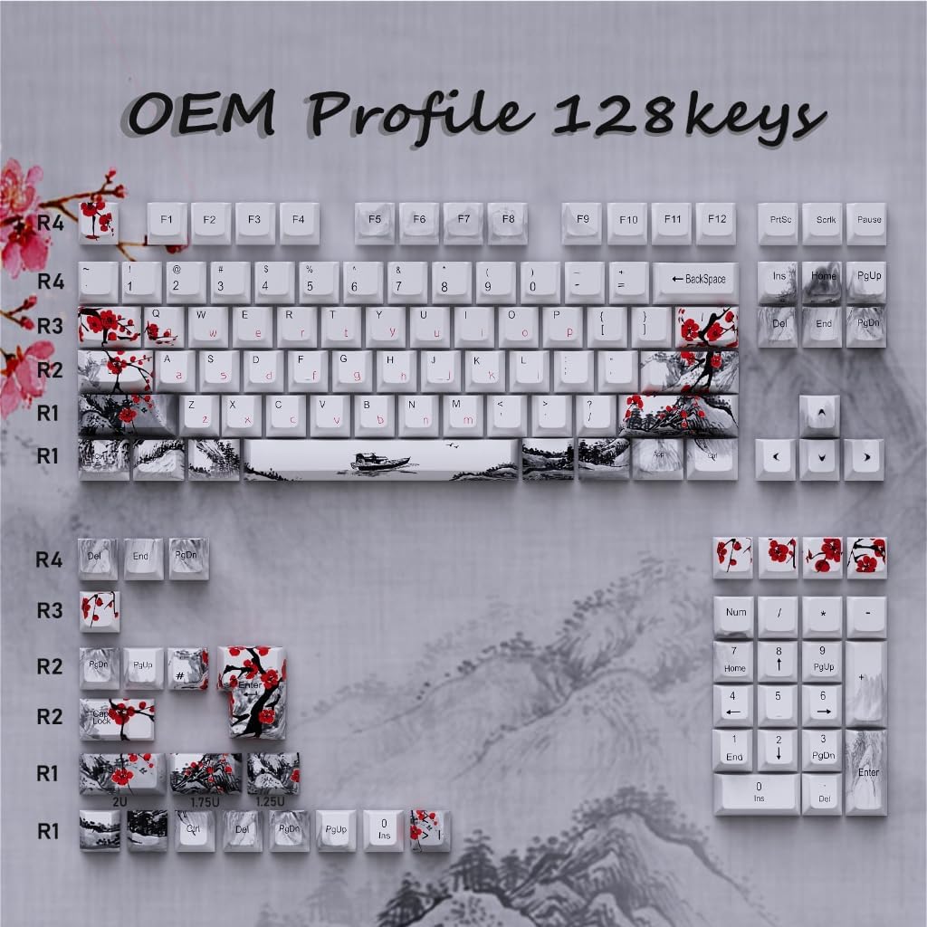 Plum Blossom OEM Keycap 128-key Thick Plastic 5Sides Sublimations Keycap Set