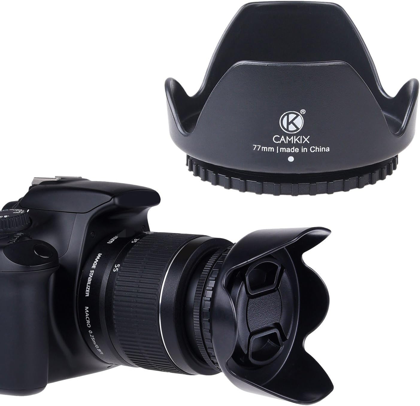 • ✅ ESSENTIAL DSLR CAMERA ACCESSORY ►This set contains 2 rubber camera lens hoods that are compatible with all 55mm lenses. It also contains a lens cap. Always verify your camera's lens thread size before ordering. The correct Ø diameter value can be found on the front of the lens or underneath the lens cap.