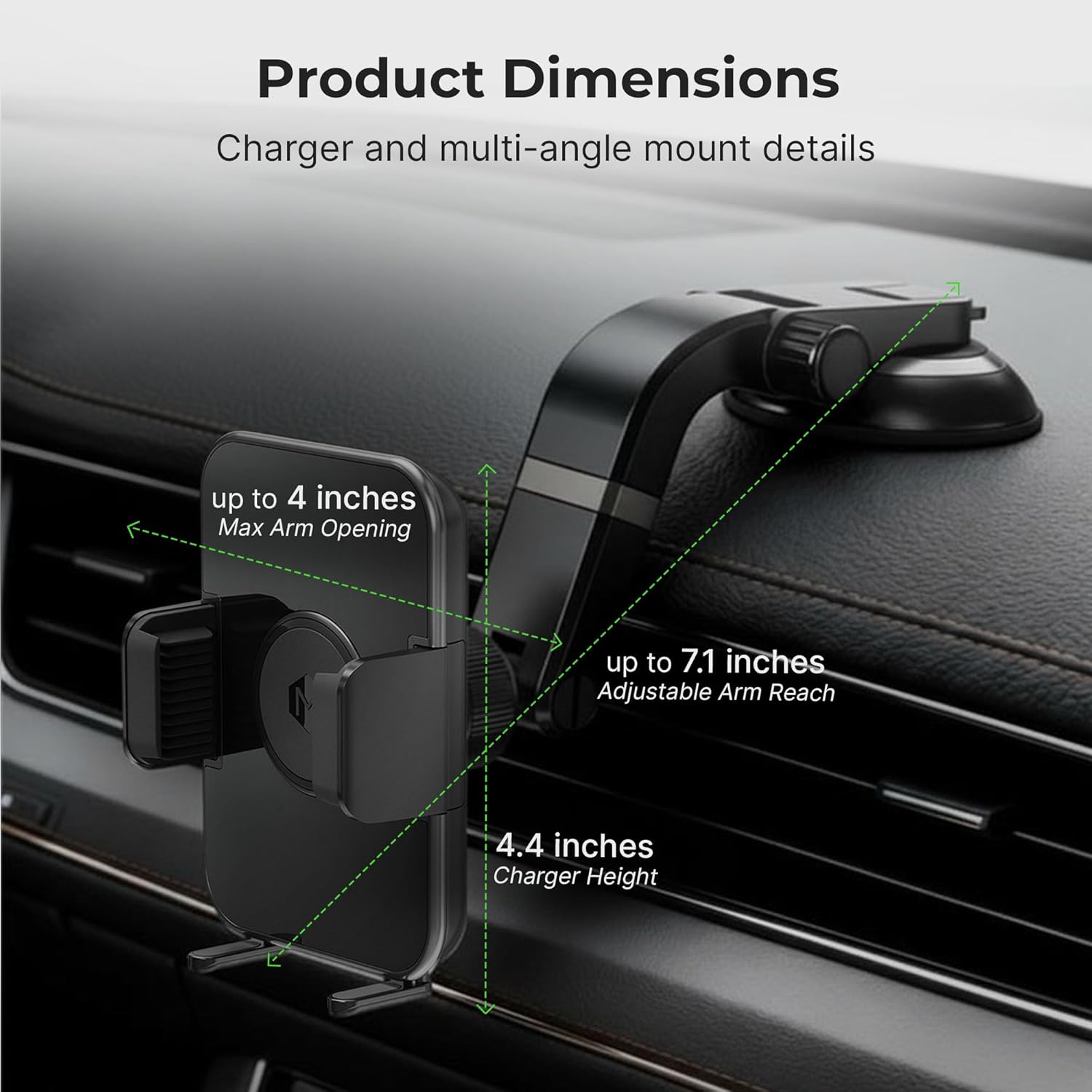 The One Touch Cradle Mount with Multi-Angle Adjustable Suction Cup is a versatile mounting solution designed for secure and convenient device placement. This mount features a one-touch mechanism that allows for easy installation and removal of your device with a single hand, ensuring quick access while maintaining a firm grip.Mighty Mount Wireless Charging Phone Holder offers effortless convenience with its one-touch mechanism, allowing quick, one-handed installation and removal. It securely fits devices 3" to 4" wide and supports fast wireless charging up to 15W—perfect for long drives, commutes, and continuous use. Designed for total flexibility, the multi-angle adjustable arm easily switches between portrait and landscape mode, delivering optimal viewing for navigation, calls, or streaming.A powerful suction cup with a secure locking mechanism ensures a stable hold on dashboards or windshields, even on rough roads. Quick-release lever allows fast repositioning without hassle. Precision-designed, assembled, and packaged in Canada, this mount features automatic arms and a fold-out stand to align your phone perfectly for efficient charging. Ideal for everyday use, combining smart technology, sleek design, and reliable performance in one premium car accessory.
