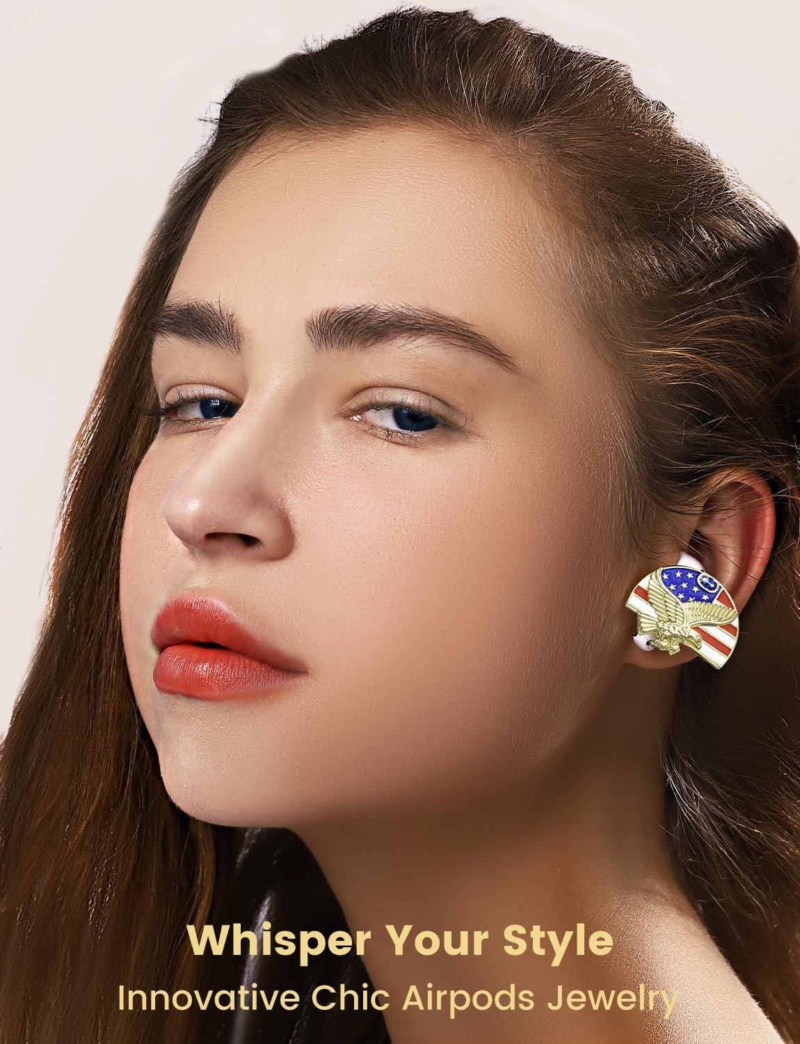 Airpods Jewelry - Adjustable Hand On Rock Anti-Lost Heart Sports Lanyard, Designer Veteran Gifts Patriotic Flag Eagle Earbud Earrings for Airpods 4/ Pro 3/ Pro 2 (2pcs Gold, Portable Box)