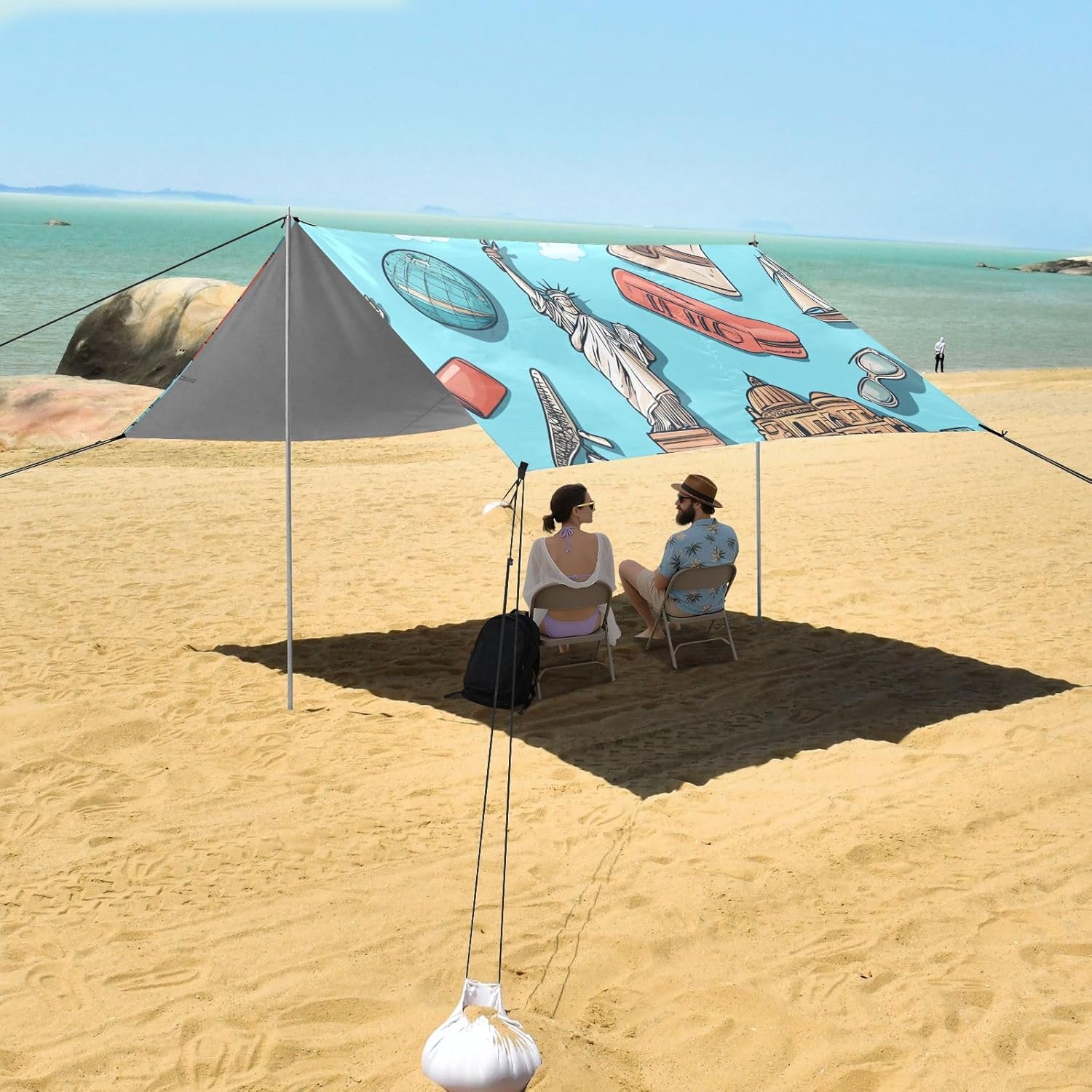 ALAZA Travel Stickers Beach Tent Sun Shelter UPF50+ Protection Beach Shade Canopy w/ 4 Sandbags for Outdoor Camping, Fishing, Backyard Fun, Picnic, 10x9 ft