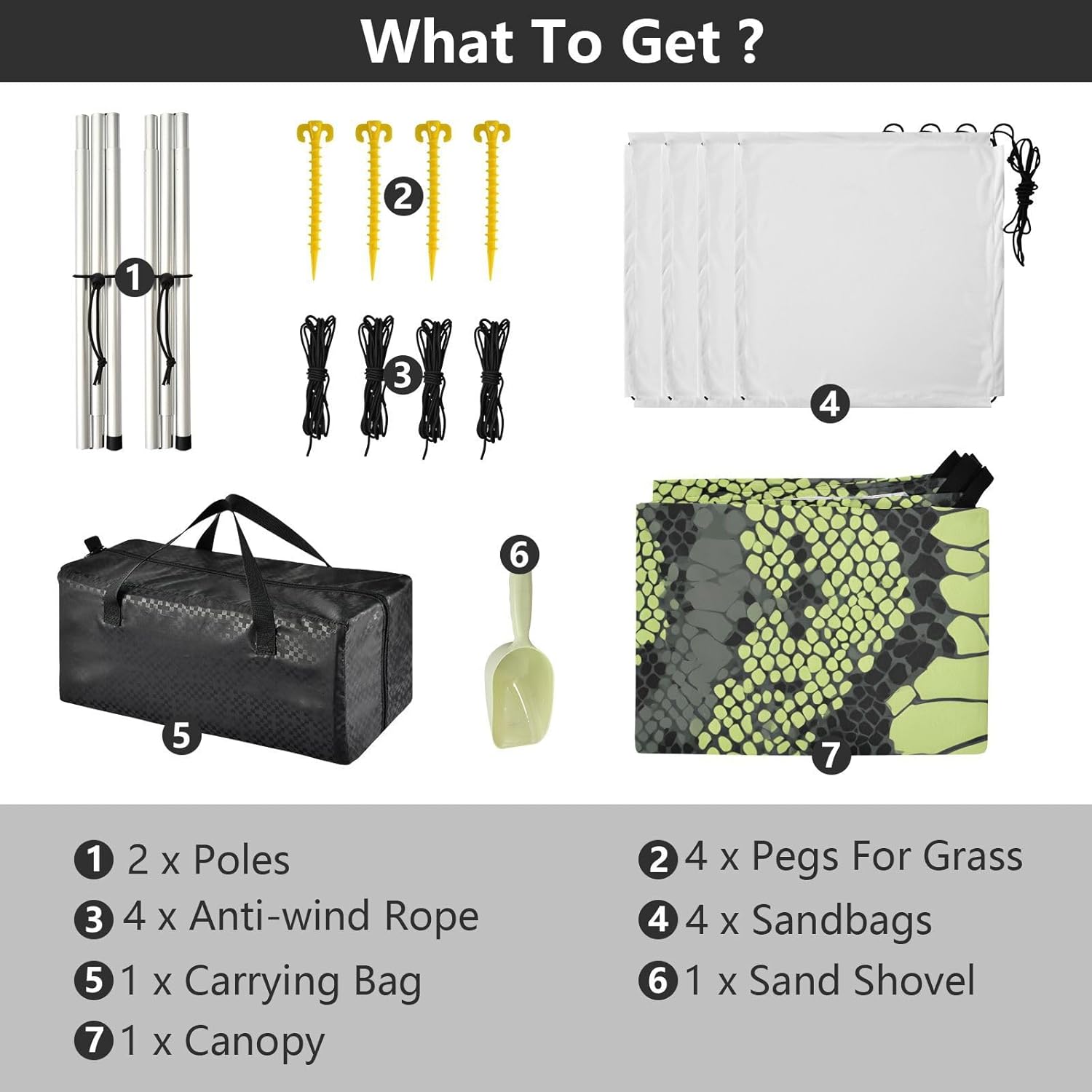 Unpack Cooling trip in 10 minutes! Our 280x320cm beach tent features silver-coated polyester oxford fabric that actively deflects heat while providing UPF 50+ protection-say goodbye to sunburns and squinting! Express your style with eye-catching, tropical-inspired prints that transform ordinary shade into a vibrant oasis. Engineered for stubborn coastal winds, the reinforced frame supports extra guy ropes alongside the included 4 refillable sandbags (use the free shovel!), 4 heavy-duty steel stakes, and 4 reinforced ropes. This high-grade anchoring system laughs at 25mph gusts while you relax. Adventure Beyond Sand: Beach lounging Lakeside camping Park picnics Fishing trips Festival hangouts Backyard "staycations