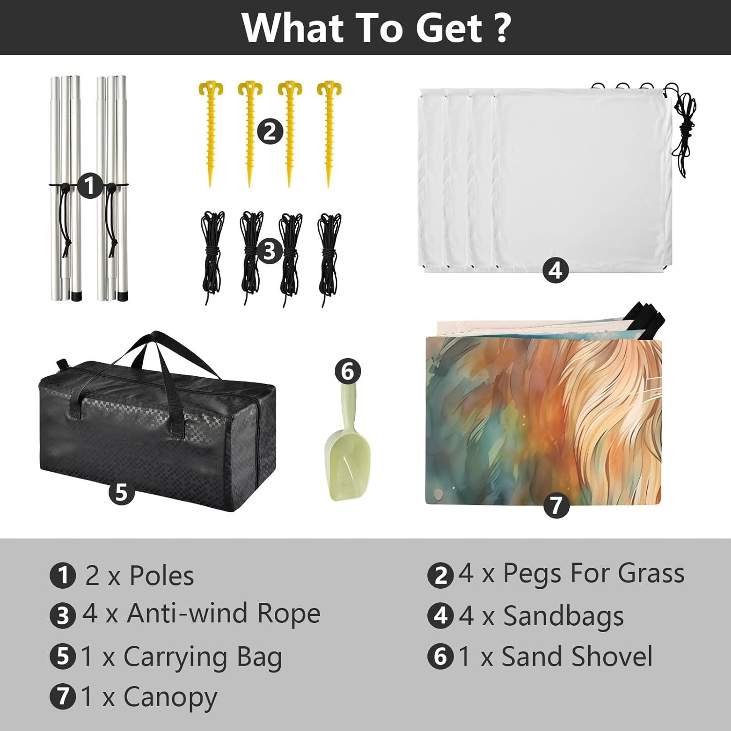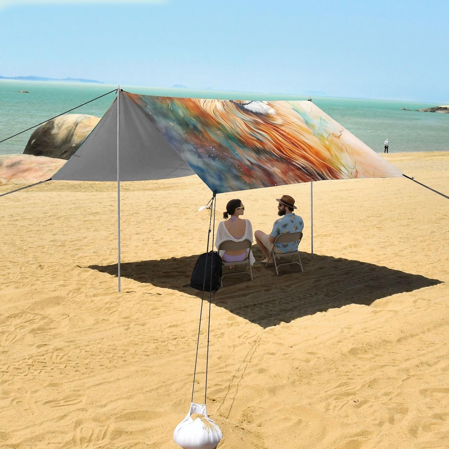 Unpack Cooling trip in 10 minutes! Our 280x320cm beach tent features silver-coated polyester oxford fabric that actively deflects heat while providing UPF 50+ protection-say goodbye to sunburns and squinting! Express your style with eye-catching, tropical-inspired prints that transform ordinary shade into a vibrant oasis. Engineered for stubborn coastal winds, the reinforced frame supports extra guy ropes alongside the included 4 refillable sandbags (use the free shovel!), 4 heavy-duty steel stakes, and 4 reinforced ropes. This high-grade anchoring system laughs at 25mph gusts while you relax. Adventure Beyond Sand: Beach lounging Lakeside camping Park picnics Fishing trips Festival hangouts Backyard "staycations
