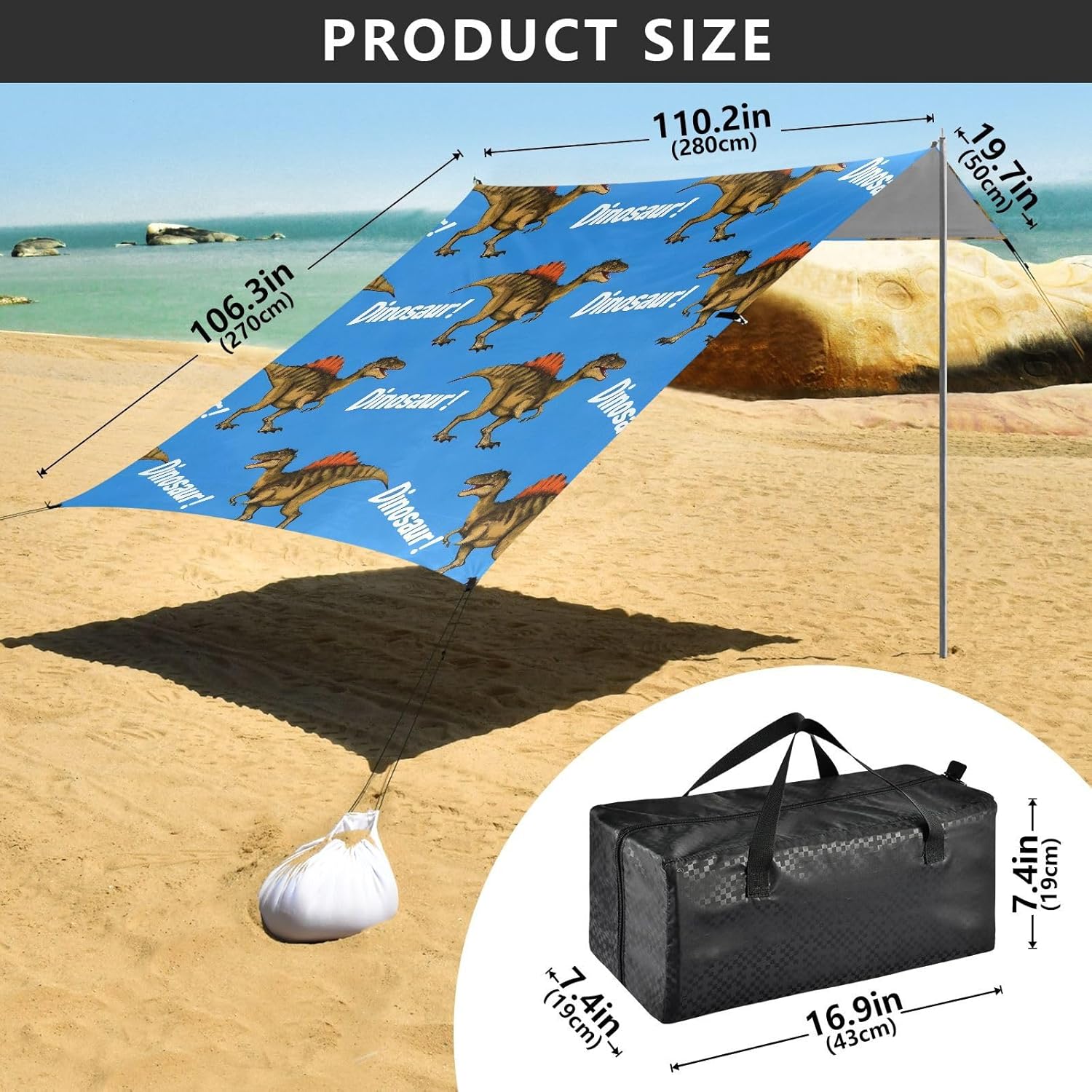 Unpack Cooling trip in 10 minutes! Our 280x320cm beach tent features silver-coated polyester oxford fabric that actively deflects heat while providing UPF 50+ protection-say goodbye to sunburns and squinting! Express your style with eye-catching, tropical-inspired prints that transform ordinary shade into a vibrant oasis. Engineered for stubborn coastal winds, the reinforced frame supports extra guy ropes alongside the included 4 refillable sandbags (use the free shovel!), 4 heavy-duty steel stakes, and 4 reinforced ropes. This high-grade anchoring system laughs at 25mph gusts while you relax. Adventure Beyond Sand: Beach lounging Lakeside camping Park picnics Fishing trips Festival hangouts Backyard "staycations