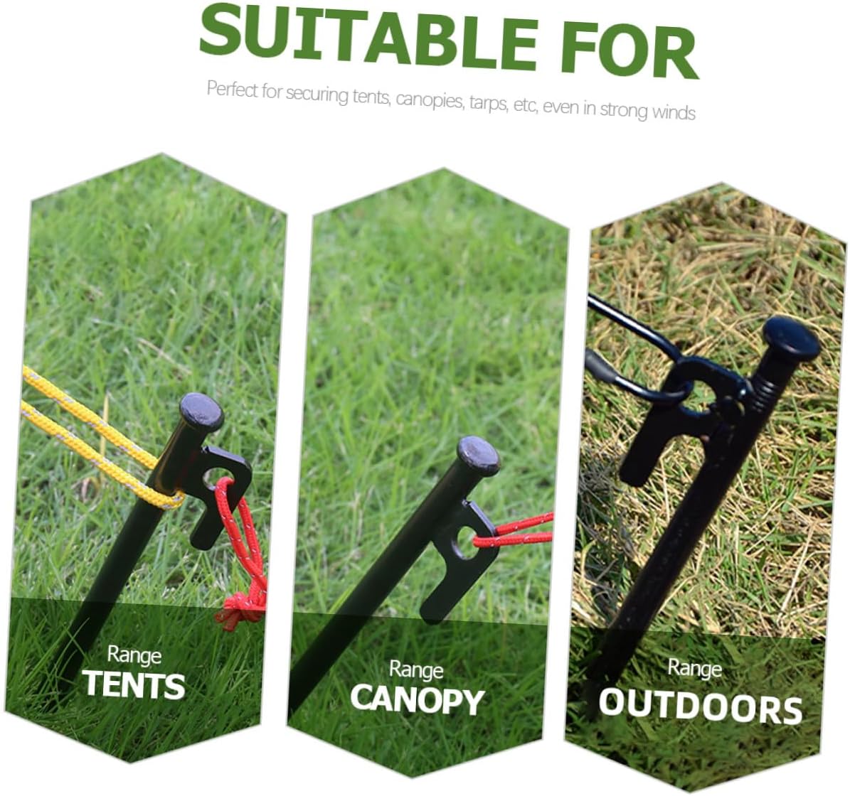 Package List 8 Pegs 1 x Storage Bag Characteristics -Material:45 steel, polyester - Size: 30.00X1.50X1.50cm/11.79X0.59X0.59in -Product Info:Tent fixing nail set - Lightweight yet heavy-duty strength while anchored, professional heavy duty stakes are not easy to break or deform stakes heavy duty. - Perfect for beach, , tents, gazebos, tarps, groundsheets, metal tent stakes can satisfy your needs tent stakes pegs. - Practical tent ground stakes have smooth surface, not easy to hurt hands. Easy to pull out design, convenient for repeated times using tent pegs for camping. - Made of premium and sturdy material with good craftsmanship, these garden stakes are strong and durable for long serve life. - The tent stake can secure your tent and hold it in place against winds and storm, you can use rest assured camping tent stakes. - ColorBlackGoods Informationtent stakes for camping These are some practical and sturdy tent stakes, made of , will not easy to get deform or break, can offer you longer and better service.ground pegs for tent Good craftsmanship, light weight, durable tent stakes, surely bring you a when outdoor camping or hiking