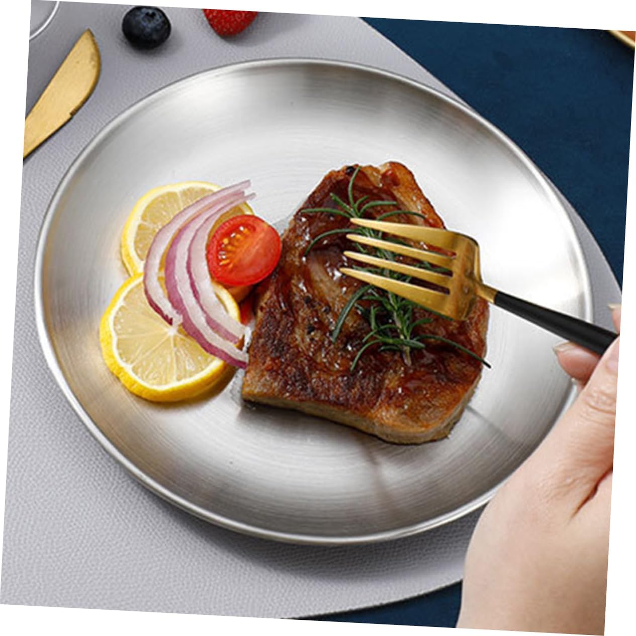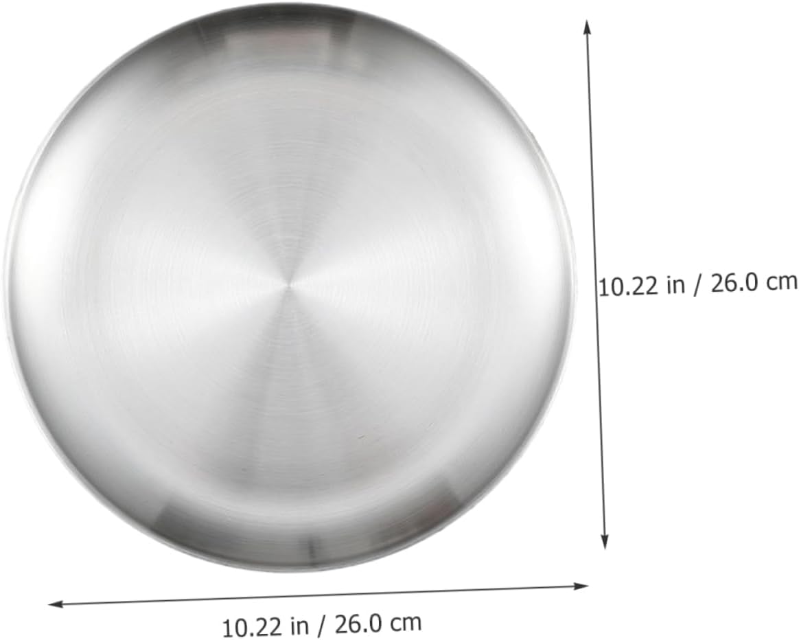 Package List 6 x stainless steel plates Features -Material:Stainless steel snack plate -Color:Silver camping dish -Size:26.00X26.00X1.70cm/10.22X10.22X0.67in stainless steel plates -The plate size is ideal for outdoor activities such as camping and picnics, lightweight and portable dinner -Crafted from stainless steel, these utensils are built to last and withstand heavy use, longtime used. round dish -This metal plate has a reasonable size which can hold different kinds of food, meet different needs. vintage plate -This plate can be washed easily though hand, and also support dish-washing machine, very convenient roast meat tray. -This plate is made of stainless steel, which has a strong resistance to pressure, and not easy to bend steel plates.Goods Informationsushi dish Easy to wash, no worry about the scratch.snack plate The size makes this metal plate suitable for any fields or any stage of your . plates This plate is your .bbq plates This round plate can help you hold many kinds of delicious food.stainless steel plates User-friendly material is also the advantage of this dish
