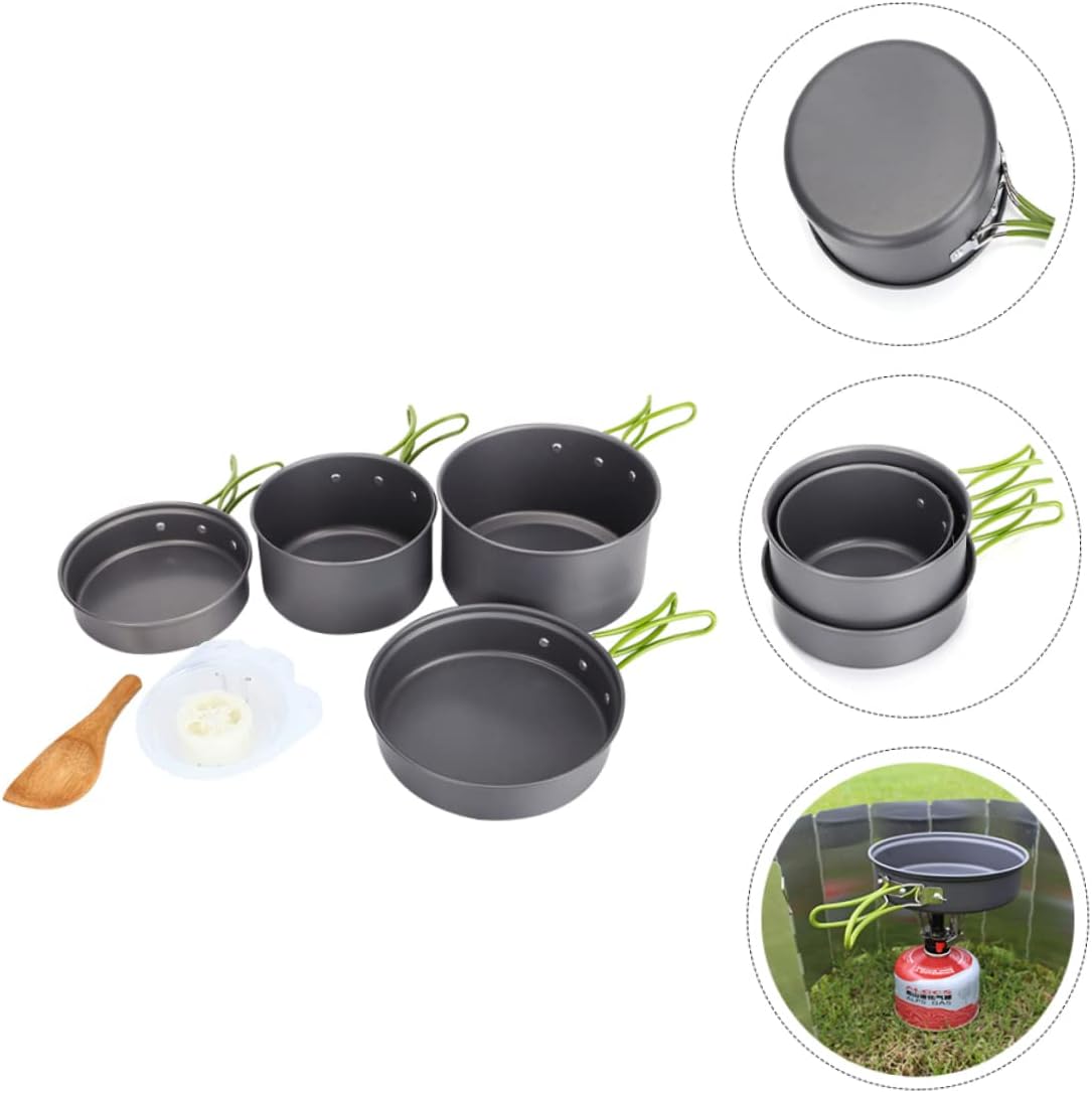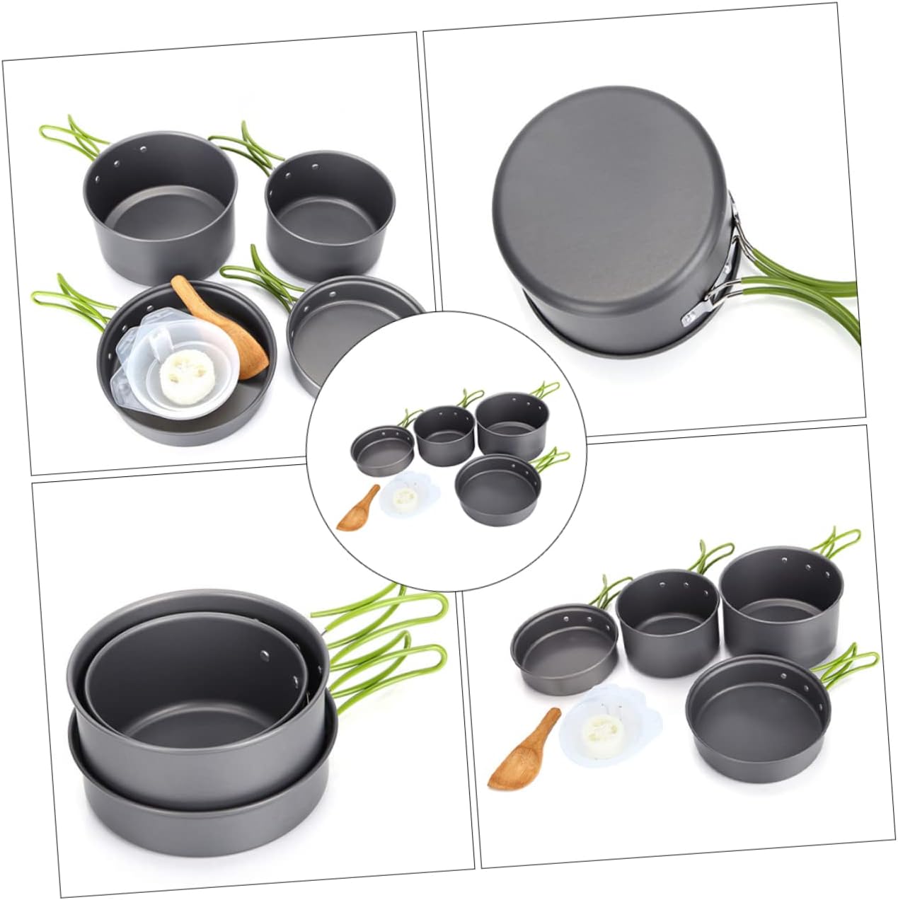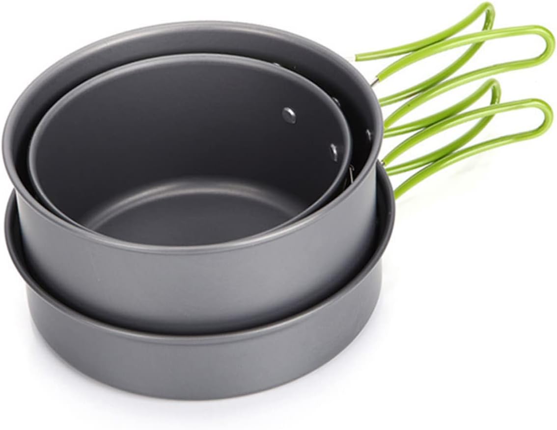 Package List 1 x Small Pot 1 x Small Frying Pan 1 x Big Pot 1 x Big Frying Pan 1 x Soup Spoon 1 x Rice Spoon 3 x Bowls 1 x Cleaner Features -Material: Oxidized aluminum alloy Camping Cookware -Color: Assorted kitchen equipment - Big Pot Size: Approx. 16.30X16.30X9.20cm/6.41X6.41X3.62in Camping Cook Tool - Big Frying Pan Size: Approx. 16.5X4.7cm/6.49X1.85in camping tableware - Small Pot Size: Approx. 14.8X8.0cm/5.83X3.15in camping cookware kit - Small Frying Pan Size: Approx. 14.3X4.1cm/5.63X1.61in backpacking cooking pot - The non-stick and foldable design greatly provides you with convenience. camping cooking pot - The suit is light and strong, which is suitable for any outdoor cooking activities, such as picnic, BBQ, camping, etc outdoor cookware. - The durable pot is not only resistant to high temperature, but also can quickly conduct heat in a short time to fry and cook food outdoor cooking pot. - Non-sticky design greatly provides you with convenience, easy to clean and wash camping cooking pan. - This outdoor cookware set is designed perfectly for 2-3 people camping kitchenware.Goods Informationoutdoor picnic kitchenware Are you still looking for a kit? If so, our mess kit is carefully prepared for you.camping cooking utensils Portable to carry and bring much convenience to you.outdoor cooking pot With this complete cookware set, you will enjoy a pleasant and tasteful meal time with your friends and family
