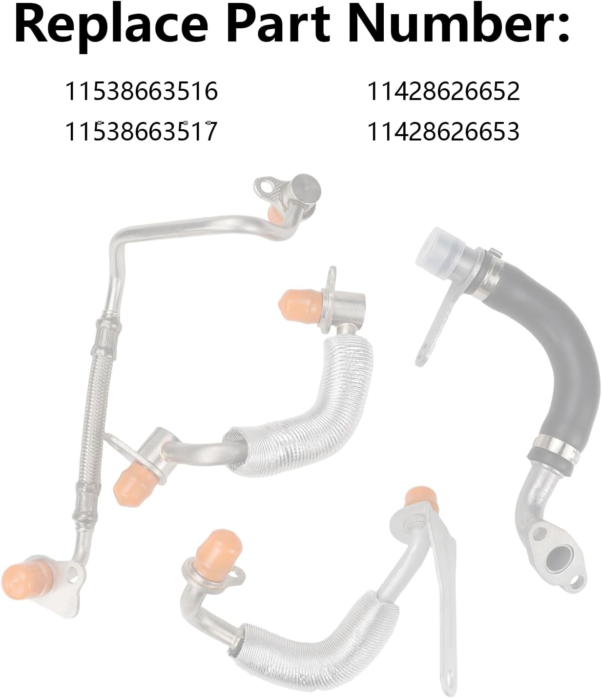 Turbocharger Coolant Line Kit 11538663516 11538663517 11428626652 11428626653 Compatible with BMW 2014-2016 228i Base 2.0 2015-2016 228i xDrive Base 2.0 2013-2018 320i Base 2.0 2018 320i Executive 2.0 2013-2016 320i Luxury 2.0 2013-2018 320i M Sport 2.0 2013-2015 320i Modern 2.0 2013-2016 320i Sport 2.0 2017-2018 320i Sport Line 2.0 2013-2018 320i xDrive Base 2.0 2012-2016 328i Base 2.0 2012-2015 328i Luxury 2.0 2013-2015 328i M Sport 2.0 2012-2015 328i Modern 2.0 2012-2015 328i Sport 2.0 2014-2016 328i GT xDrive Base 2.0 2013-2016 328i xDrive Base 2.0 2013 328i xDrive Base 3.0 2014-2016 428i Base 2.0 2014-2016 428i Luxury 2.0 2014 428i Luxury Line 2.0 2014-2016 428i Sport 2.0 2014 428i Sport Line 2.0 2015-2016 428i Gran Coupe Base 2.0 2015-2016 428i Gran Coupe Luxury 2.0 2015-2016 428i Gran Coupe Sport 2.0 2014-2016 428i xDrive Base 2.0 2012-2016 528i Base 2.0 2014-2016 528i Luxury 2.0 2014-2016 528i M Sport 2.0 2012-2016 528i xDrive Base 2.0 2013-2015 X1 sDrive28i 2.0 2013-2015 X1 xDrive28i 2.0 2015-2017 X3 sDrive28i 2.0 2013-2017 X3 xDrive28i 2.0 2013-2014 X3 xDrive28i 3.0 2015-2016 X4 xDrive28i 2.0 2012-2016 Z4 sDrive28i 2.0