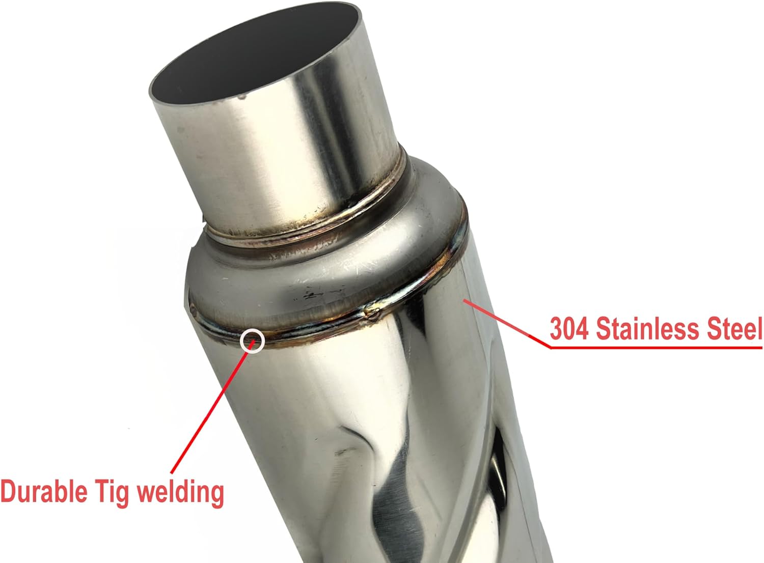 NETAMI Bullet Resonator is made of 100% T304 BLACK stainless steel with fully TIG welded for maximum durability.The unrestricted, straight through design wrapped with multi-layer sound absorption material maintains a mellow performance tone and cut-down unwanted drone. Unlike others, NETAMI stainless inner core has a heat joint expansion to prevent cracking on welding part.