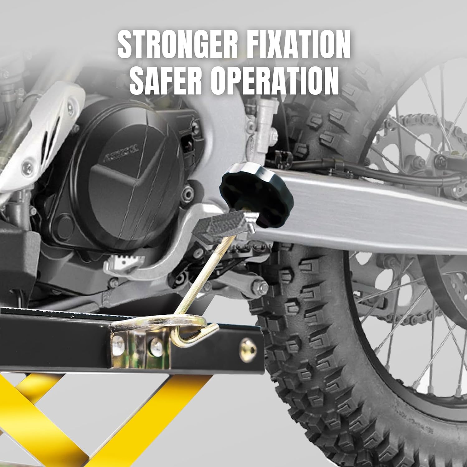 • Multi-Functional Use: There is a safety pin in the package to hold it in place and the bolt prevents the lift jack from falling and protects your motorcycle.