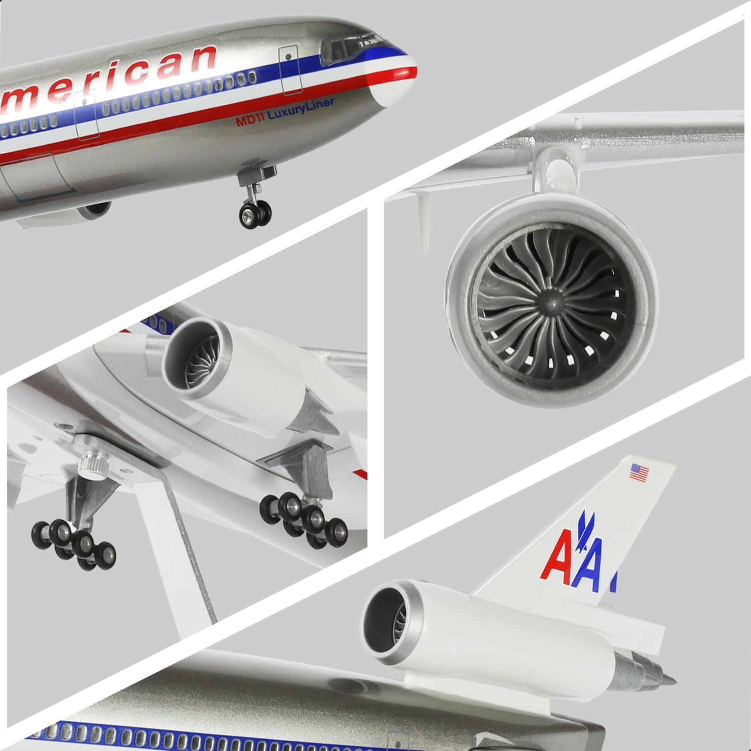 This is a pre-built 1:130 scale MD-11 model crafted from high-quality hard resin (approximately 860g) with excellent durability. Measuring 18.70×15.79×5.31 inches (47.50×40.10×13.50 cm), it features hollowed-out transparent windows, realistic engine nacelles and wings, with all markings, lines and logos spray-painted (no stickers) to replicate the authentic airliner livery. The model comes with an airplane display stand and a set of wheels, allowing it to be displayed on the stand or placed directly on a table—perfect for aviation hobbyists, workers, learners, or anyone wanting a conversation-starting display piece, and a must-have for airplane collectors. It also makes a thoughtful gift for Father’s Day, retirement, corporate events, academic occasions or birthdays, symbolizing elegant sky dreams and wonderful journey memories. For after-sales service, we will reply to and process any issues within 24 hours.
