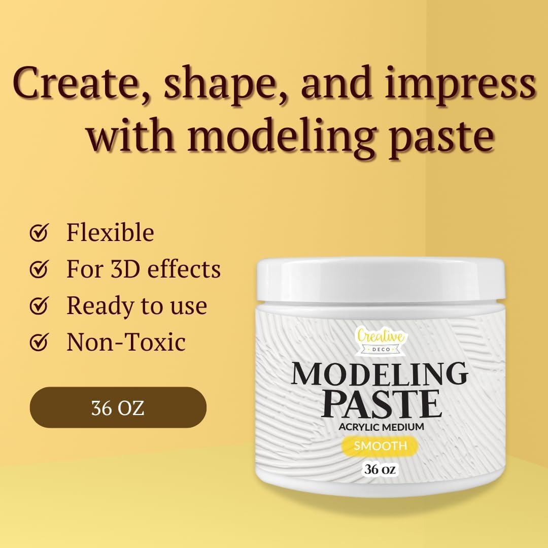 • Thick & Shape-Holding Modeling Paste With No Grain – Ultra-dense acrylic modeling paste with a thick plastic-like consistency that holds shape exceptionally well—perfect for creating raised textures, reliefs, and sculptural effects in acrylic painting and mixed media art.
