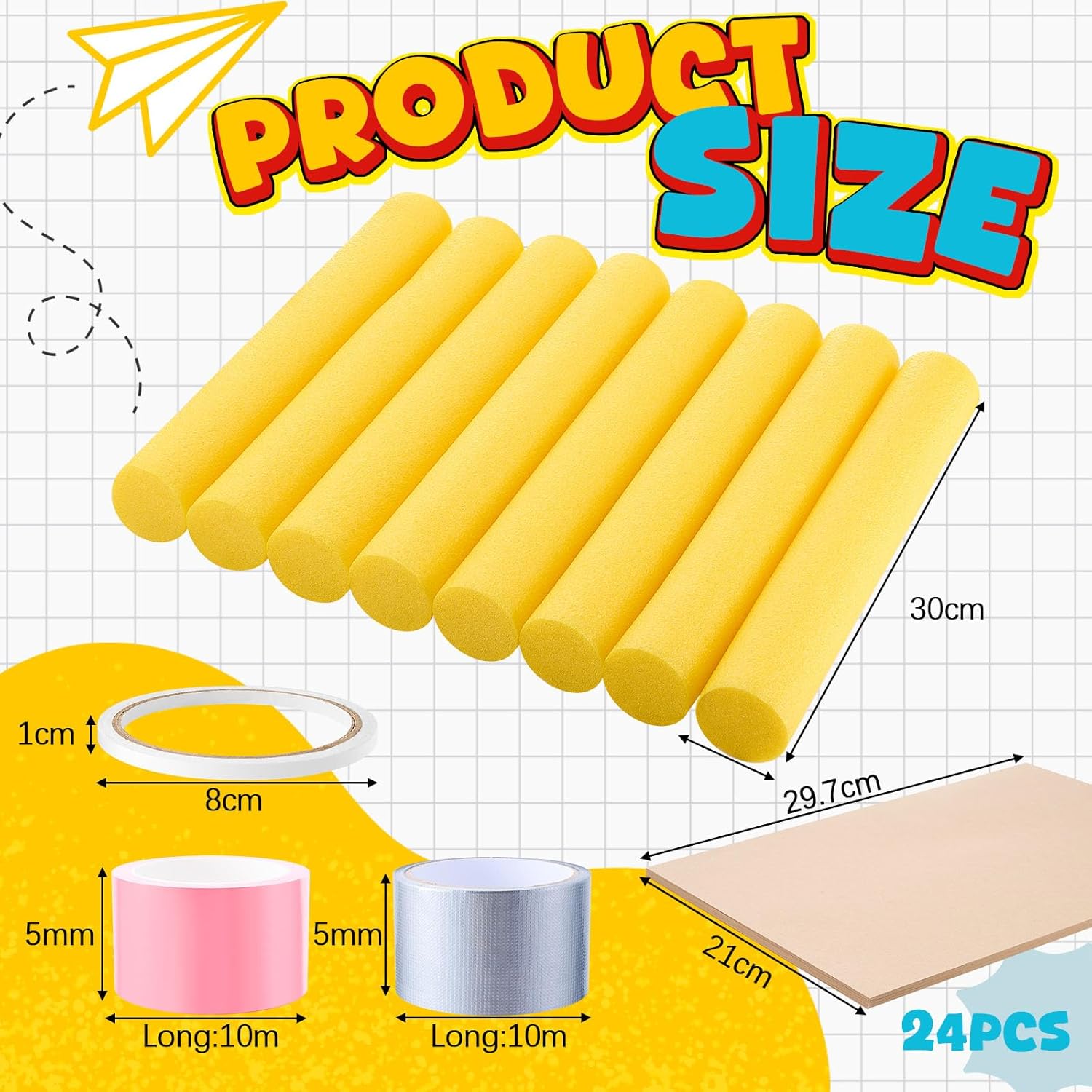 Features: Creative handcraft: Take some pool noodles and turn them into the cutest, most fun back-to-school prop. These can be applied as classroom decor, first day of school photo props. With a few supplies, you'll have a whole box of these pencils made in no time. Specifications: Material: foam, paper Color: yellow Size: about 11.81 Inch Package includes: 24 x Kraft paper 1 Roll of grey tape 1 Roll of pink tape 1 Roll of double-sided tape Notes: Manual measurement, please allow slight errors on size. The color may exist a slight difference due to different screen displays.