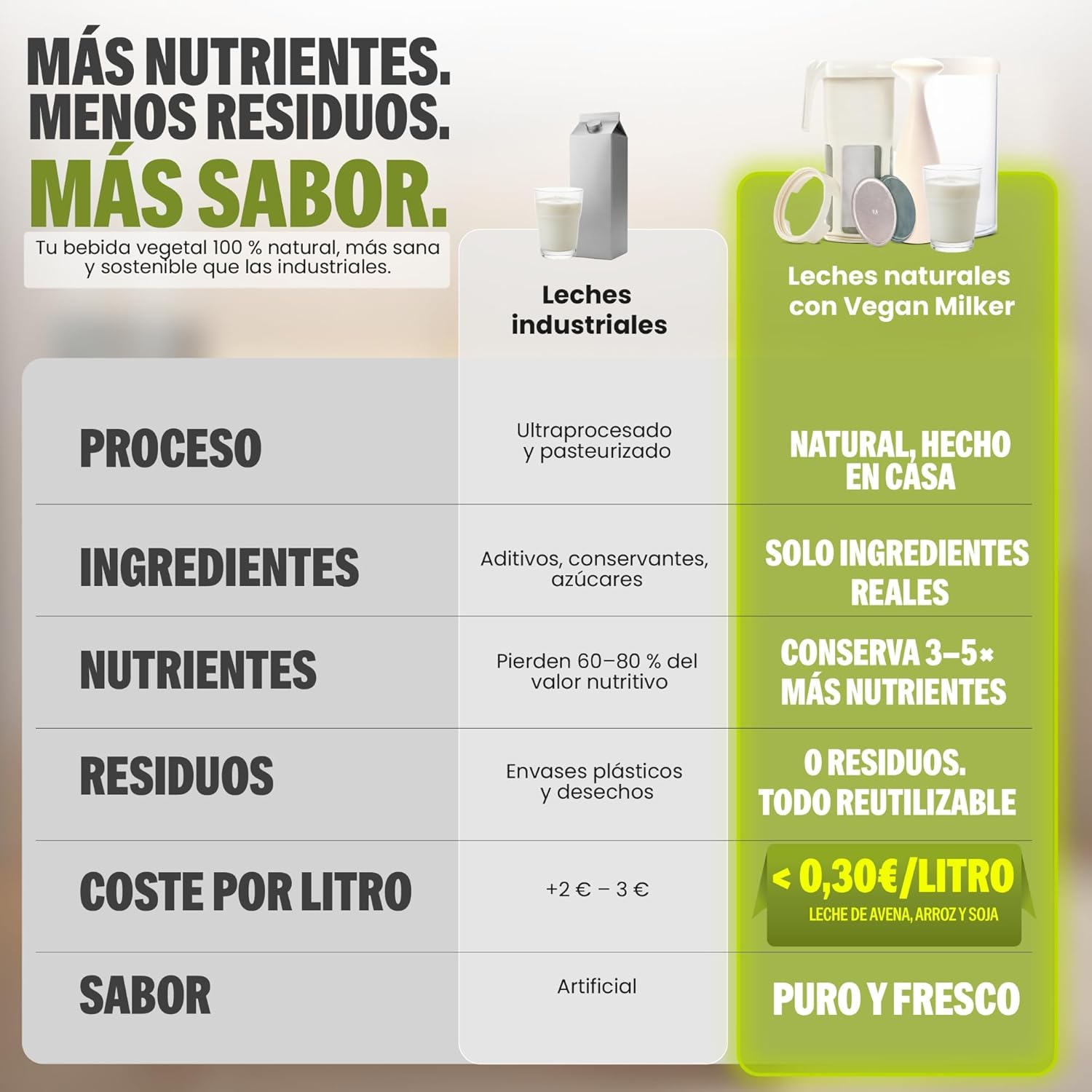 Vegan Milker MLSI - Plant Milk Maker for Homemade Nutmilk, Almond & More - Interchangeable Discs for Custom Emulsion & Creaminess, 1 Liter in 1 Minute - Recipe eBook