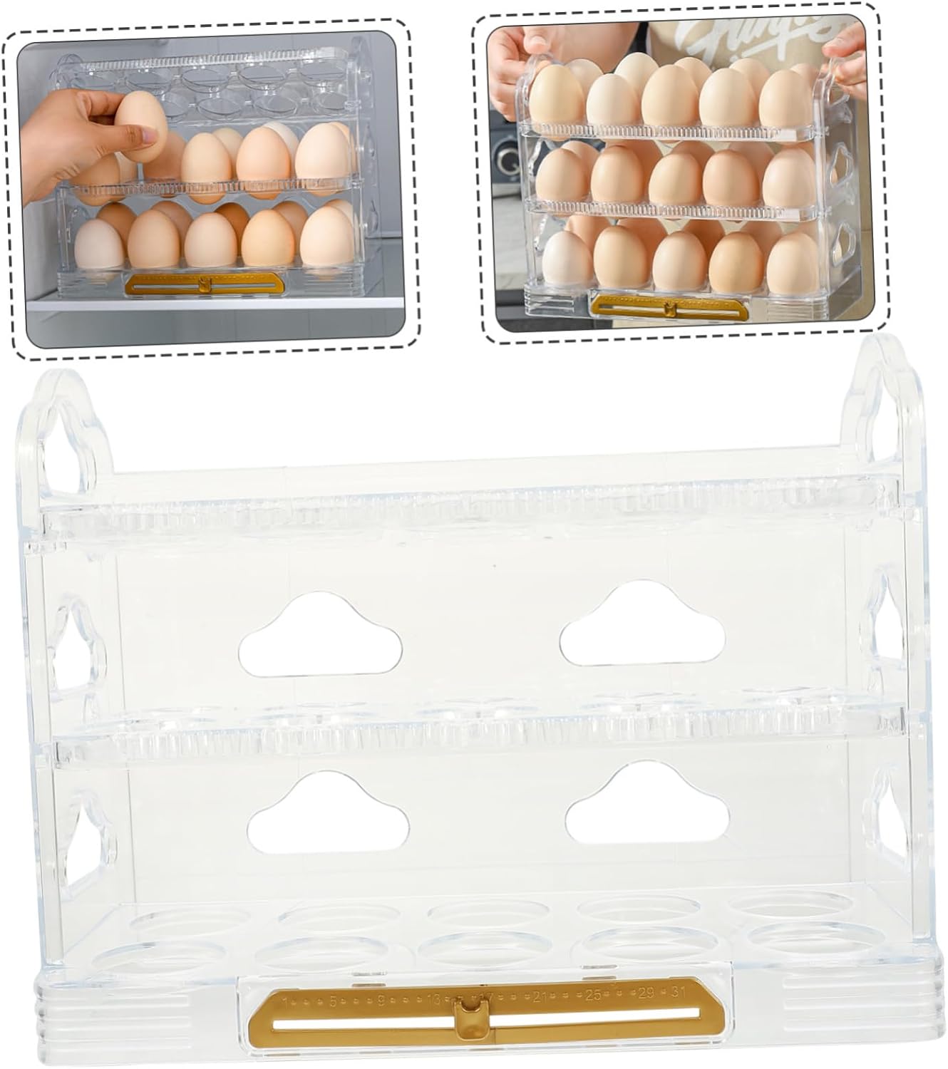 Package Include 3 x Egg Holder Features -Material:PET, PP freestanding egg holder -Color:Transparent desktop egg holder -Size:25.50X20.00X10.00cm/10.02X7.86X3 egg tray. - Large capacity to store eggs and fits all sizes of eggs, meet your needs and take good care of your eggs box for egg. - Made of premium material, exquisite craftsmanship makes it not easy to bend or break fresh. - Grooves design, fit the shape of the egg, anti-extrusion, anti-collision, avoid egg rolling kitchen egg organizer. - This versatile Egg Tray is the solution for organizing your refrigerator containers. - Multi compartments with large capacity, can store more eggs and save space for your fridge tray.Goods Descriptionegg storage holder It can be placed in refrigerator to keep eggs fresh.egg holder for refrigerator Egg holder can prevent collision fragile, easy to move, can be put in the refrigerator to refrigerate, convenient to use.clear container This is Egg Holder, which is made of premium and high-grade materials, durable and can be used for a long time.egg storage for home Can be placed in the refrigerator side door, reasonable use of space
