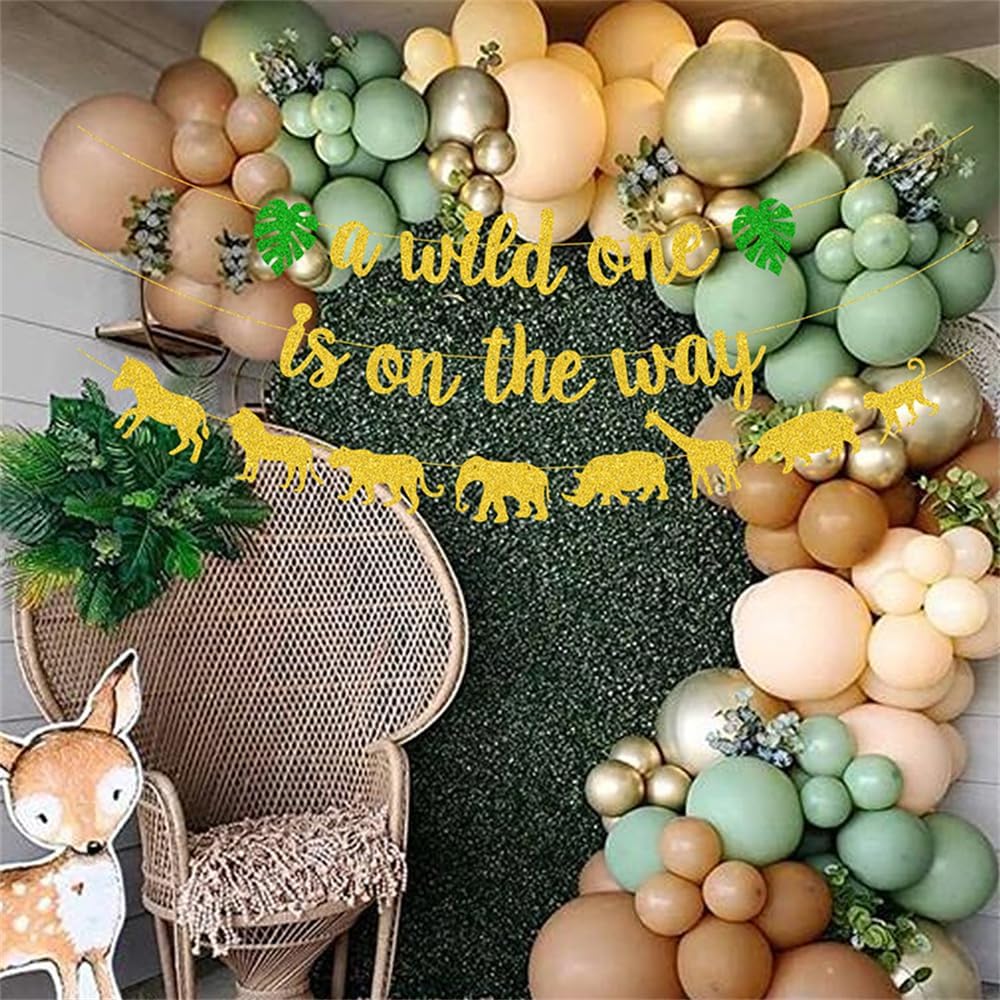 Safari Baby Shower Party Decorations for Boys, Gold Glitter A Wild One is on the Way Banner, Welcome Baby Sign, Jungle Birthday Party Supplies