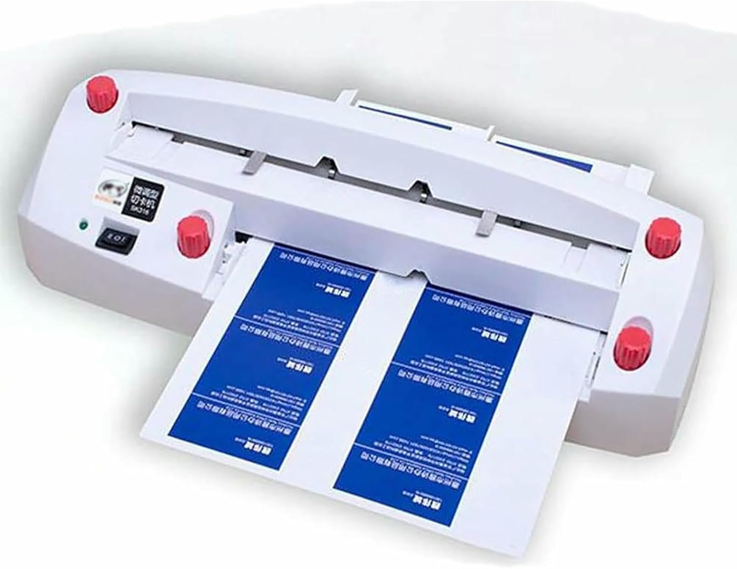 Specifications Product name: fine-tuning business card cutting machine Suitable paper type: (195-212)X297mm Suitable paper thickness: (120-300 grams) except special paper Cutting business card specification: 90X54mm square corner Positioning plate adjustable range: 1-18mm Tool life: >100,000 times Cutting speed: 50 rpm Machine power: 20W Product net weight: 3.1KG