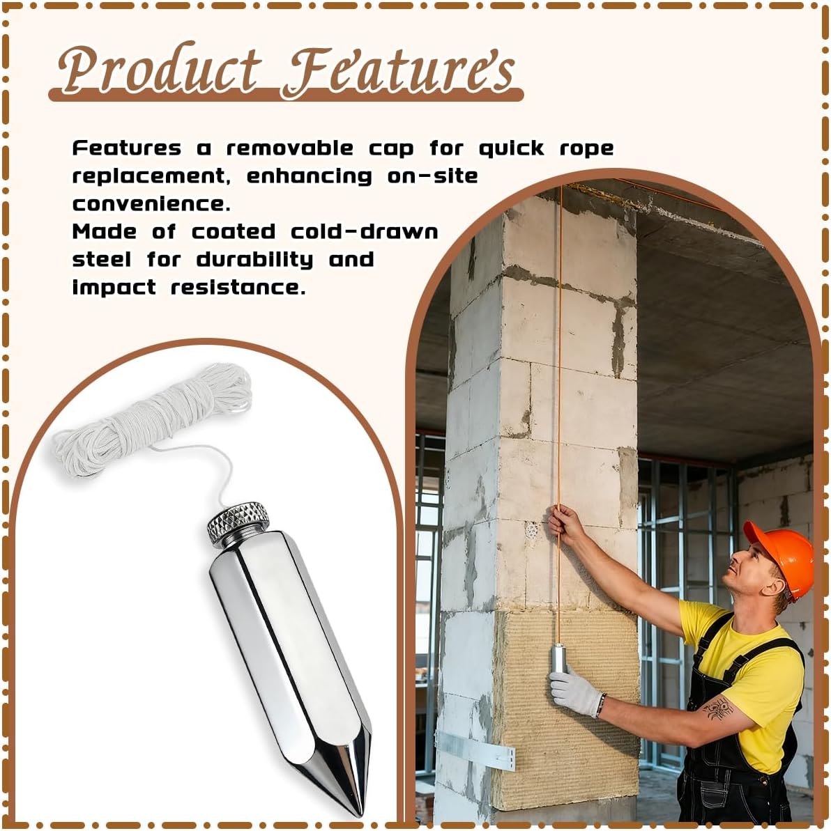 ParametersName: Plumb BobMaterial: Alloy SteelColor: SilverApplication Scenarios: The Plumb Bob utilizes moderate weight and synthetic rope to ensure stable, centered alignment and enhance the accuracy of plumb line applications. It is ideal for a variety of indoor and outdoor applications, including carpentry, masonry, surveying, and fencingPackage ContentsPlumb Bob x 4 pcs49 ft rope x 4 pcsNoteThe goods due to a long period of transport, there may be individual product defects, if you encounter defective products, please contact us in a timely manner to replaceAs the above dimensions are measured manually, the actual size of the item you receive may be slightly different from the above dimensionsDue to the monitor, camera or other factors, there may be a little color difference