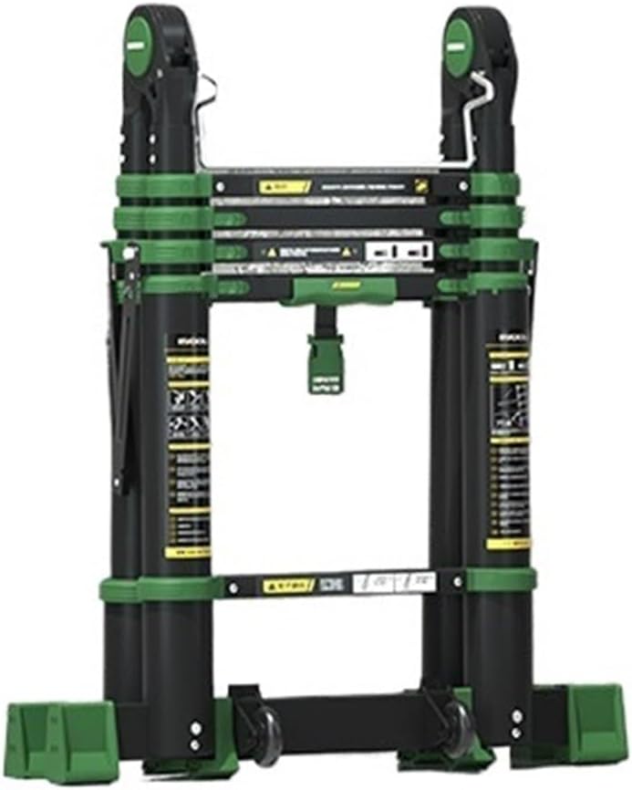 • This versatile ladder features a secure spring locking system for enhanced stability, minimizing wobble. Its 180-degree telescopic design allows seamless transformation between a vertical ladder and an A-frame ladder, making it ideal for various tasks.