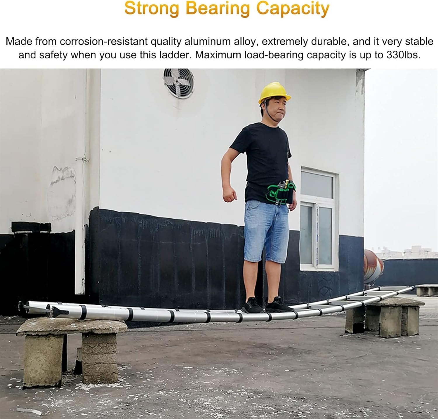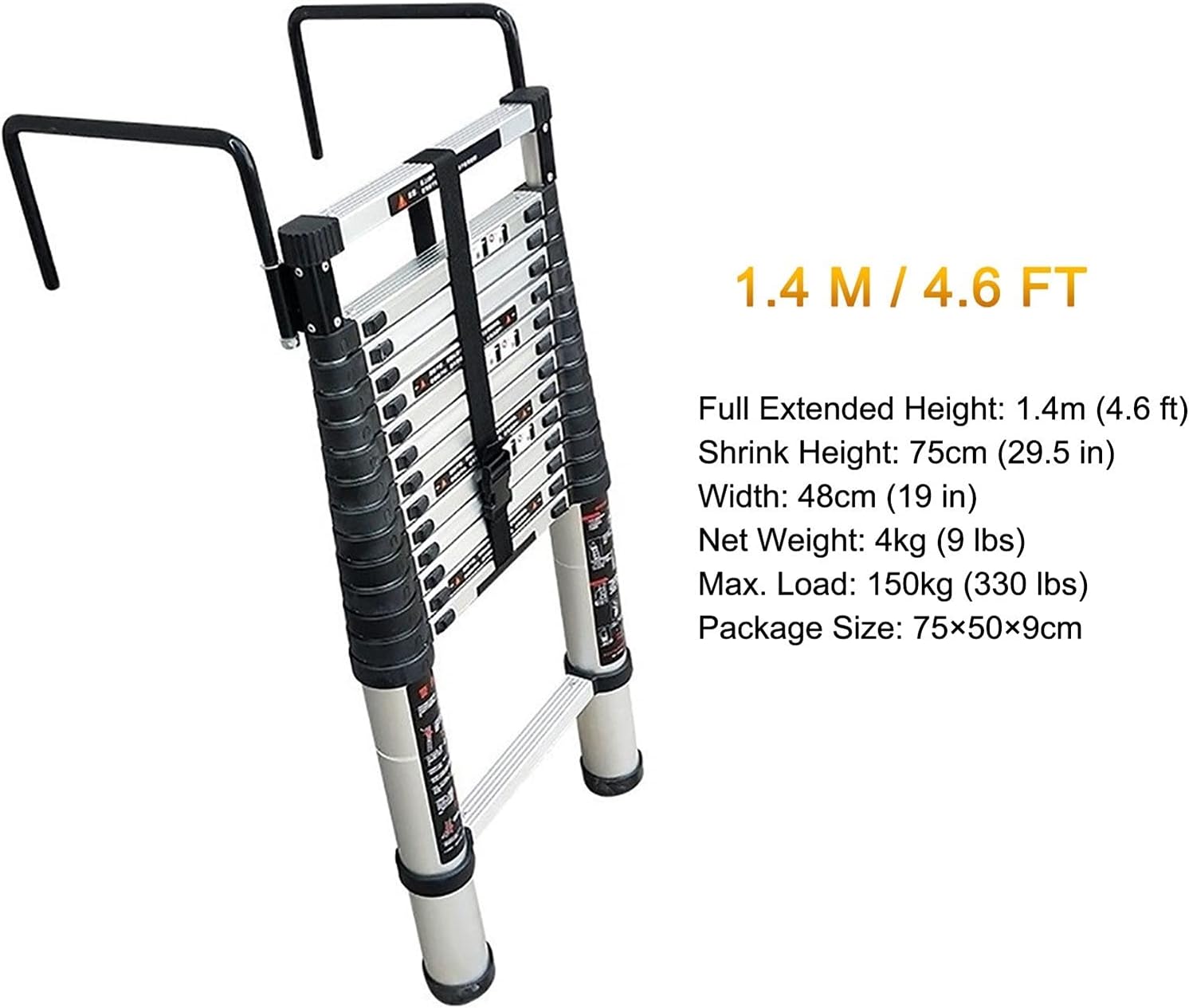 Telescopic Ladder - A compact and sturdy climbing tool for your projects.Specifications:Material: Aluminum AlloyProduct Size: As shownWidth: 48cm/19 inchMax Load Capacity: 150kg (330lbs)Our Strengths:Made of aluminium alloy, stable and durable.You need retract it from top down, rung by rung.Lightweight, easy to carry, space-saving storage.Anti-slip rubber feet sleeve on every step to give maximum safety.Ideal for loft entry, external roof access, washing windows doing painting etc.Package Included:1 x Telescopic LadderKindly Note:1. Do not put your fingers on or between the rungs while the ladder is retracting.2. Do not use the ladder outside in adverse weather conditions, such as strong wind.3. The ladder should be leaned when shorten or close.4. Before using the ladder it shall be checked that all locking mechanisms are working properly.Tips:1. If you have any questions, please contact us and we will respond to your information within 24 hours.2. There may be some 1-2cm errors in manual measurement, please refer to the actual product. (0.39 inch=1cm)3. Colours might slightly vary due to the shoot lights and on different monitors and screens, please refer to the objects received.