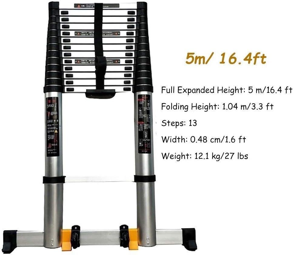 Extra Tall Telescopic Extension Ladder - Portable Foldable Multi-Purpose Use with Stabilizer Bar for DIY & Professional Projects - Heavy Duty Safety Certified Space-Saving Design