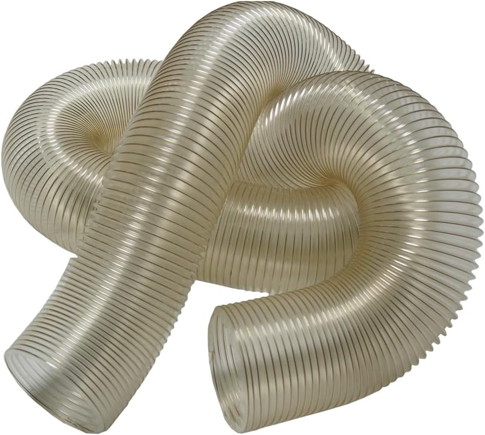 This ultra flexible duct is made out PVC wall reinforced with a steel spring wire. The polyvinyl chloride wall construction gives this hose excellent durability, flexibility and compressibility. This flexible duct is available in the following diameter sizes 1, 1.25, 1.5, 1.75, 2, 2.5, 3, 3.5, 4, 5, 6, 7, 8, 9, 10 and 12 and in three standard lengths of 5ft, 10ft and 25ft. The XPV 708 - PV Flexible Duct is designed to handle chemical fumes, dust, light materials and ambient air in HVAC applications. It has a wide working temperature range of -20 to 160F. The XPV 708 - PV Flexible hose duct is a highly versatile and affordable flexible ductwork that can be used to move dust, air and fumes. This flex ducting is available in two colors, blue and clear, and the clear version allows the end-users to visually track clogs in the duct lines. This flexible duct can be compressed to a quarter of its extended length with an excellent compression ratio of 4 to 1. The compressibility is due to the highly flexible nature of the vinyl, or PVC, film that the duct hose’s wall is constructed with. While the PVC material is sturdy and allows the hose to flex, it also has a steel wire helix winding through the body to add an extra level of reinforcement and this gives structure to the duct. One of the key characteristics of the PVC Flex ducting is its high bend radius. It is designed to twist and contort into tight spaces to provide effective air movement, even in small or unusual settings. This hose is multi-faceted partly due to its availability in three lengths. This reduces wastage for end-users who can comfortably purchase the length needed that most closely matches their needs. This flexible duct is ideal for use in HVAC systems when metal hoses cannot offer enough bend to allow for an easy installation. XPV 708 - PVC flex hose is also perfect for temporary chillers, portable AC units, and dehumidifiers, especially since it is available in multiple diameter sizes, it can match any brand’s required dimensions. The durability of PVC also allows this duct to be used when dust and debris need to be transferred and a flex duct is needed to get the job done. PVC are materials used in irrigation, plumbing, outdoor structural functions because of their excellent life when exposed to moisture and harsh conditions. In addition, PVC products present excellent life cycles when exposed to UV light, weathering and the outdoor elements.