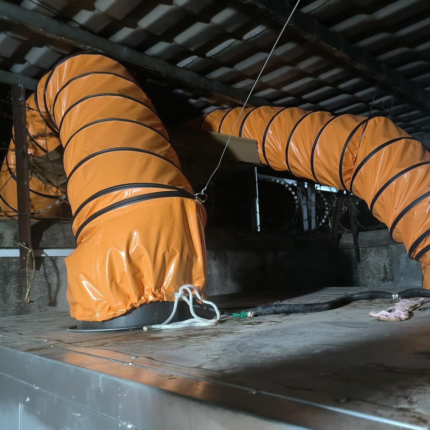 --- Struggling with stiff, hard-to-install ventilation ducts?--- Meet your perfect solution! Our ultra-flexible PVC air duct bends effortlessly, installs in seconds, and fits any space. Lightweight yet sturdy - it's the smart choice for easy, efficient airflow! Perfect for HVAC, exhaust & more.SpecificationsName: Flex Air Duct HoseMaterial: pvc tri-proof cloth / steel wire spiral / pvc tape/ Stainless steel D-ringsSize (Customized): Diameter + LengthEnvironment temperature: -22~212 ℉ (-30~100 ℃)Features: waterproof, fireproof, high temperature resistant, sturdy, retractable and foldableOur Advantages1. Easy Maintenance - Wipe-clean surface resists dust buildup.2. All-Weather - UV-resistant PVC withstands sun, rain, and temps from -22°F to 212°F!3. Easy to Cut & Customize – Can be trimmed to the exact length needed for a perfect fit.4. Cost-Effective - Lasts 3X longer than cheap plastic ducts while costing less than metal!5. Multi-Purpose Use - Ideal for HVAC, dryer vents, workshop exhaust, grow tents, and more!6. Tool-Free Installation - Sets up in seconds with our adjustable rope system - no tools needed!7. Space-Saving Storage - Compresses to 1/3 its size when not in use - perfect for small workshops!8. Quiet Operation - Smooth interior reduces air turbulence noise by 30% vs. metal ventilation hose!9. Lightweight & Portable - Weighs 50% less than metal ducts, making transport and handling effortless.10. Industrial-Strength - Reinforced steel wire spiral prevents sagging while maintaining full flexibility.Package Content1 x Flexible Ventilatio DuctingNotiz:1. Due to different batches and manual measurement, there may be 1 cm error. Thank you for your understanding.2. There may be color difference due to the difference of shooting light and display screen. Please prevail in kind.