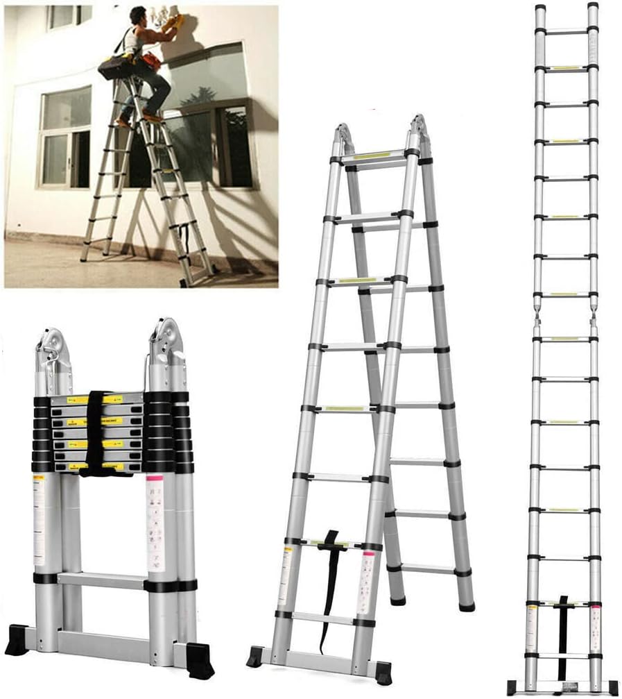 I believe this little extension ladder can bring great convenience to your life.telescoping ladder frame compact aluminum extension portable telescopic outdoor camper trips motorhome tool platform stabilizer bar one-button retraction collapsible w/non-slip feet multi-purpose home loft ladders attic light weight easy carry storage stepladder alloy foldingProduct Description:-Convenient to use and easy to carry around-Great helper for both indoor household use and outdoor activities-Safe and compact----black anti-slip rubber sleeve on the bottom of ladder step and stable locking key between two neighboring steps to avoid bumping and friction12.5ft/3.8m Straight Telescoping LadderNumber of Ladder Step: 13Step Interval: 28cmMax. Load: 150kg/330lbG.W.:12.6kgMaterial: Stainless steelColor: just as the pictures showPackage Size: 48.2cm x8.2cm x 90cm-Slight deviation may occur during measurement, please take care and thanks for your understanding Package Include:1×12.5FT Telescoping Ladder*** NOTE ----- Do not exceed the telescoping ladder maximum total load.