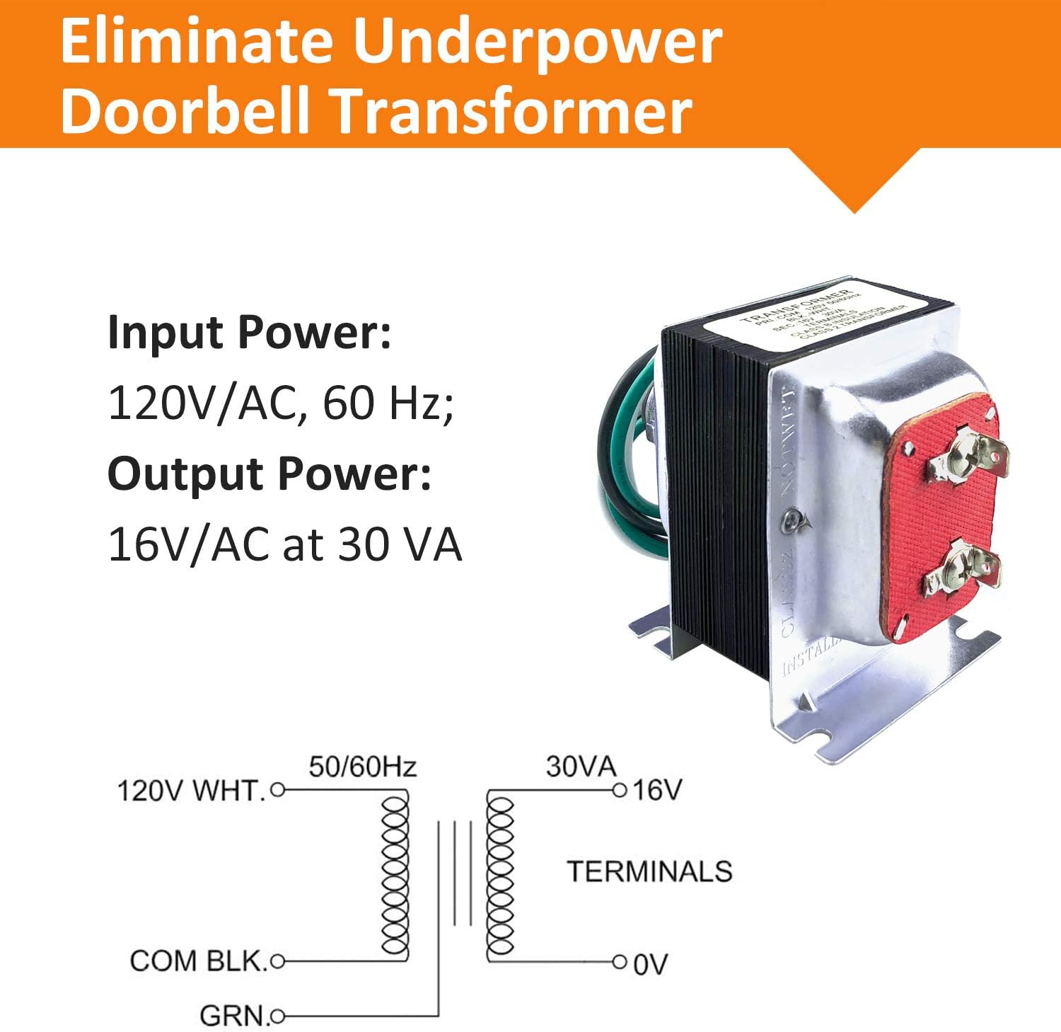 | Included Components | 1 Pack 16V 30VA Doorbell Transformer |