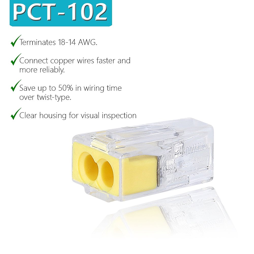 This Connector is rated replacement for 400V at 24A and can be used with 18-14 AWG solid or stranded. Simple flexible and compact conductor terminal block, replacement for use with solid, stranding and flexible cables. Easy, fast push wire installation, that requires no tools and can be fitted in seconds to stripped cables. Ideal replacement for use on mains voltage ring-main and cooker installations, HVAC control circuits or as an alternative to the conventional junction box.Installation notes: Connectors should be installed inside a suitable enclosure, but maybe installed inside cavity's when installing back-less equipment such as domestic lighting. There is no requirement to secure the connectors providing the cables are secured with clips or glands outside the enclosure. As with all connectors these can be reused time after time with no loss of connectivity or capacity. Package Included: - 100pcs x 2 Hole Connector - 100pcs x 4 Hole Connector - 50pcs x 6 Hole Connector - 50pcs x 8 Hole Connector
