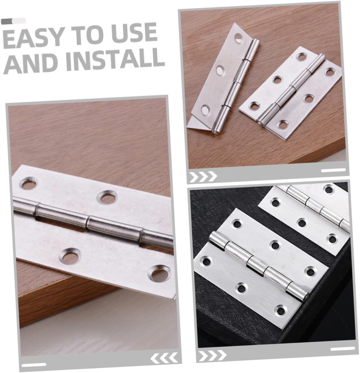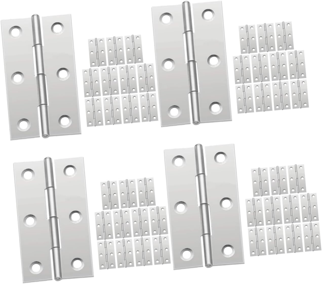 Package List 60 x Hinges Characteristics -Color:Silver exterior door hinges -Size:6.60X3.70X0.80cm/2.59X1.45X0 hinges for doors. -Material:Stainless Steel lift off hinge - Durable stainless steel material made, these lift off hinges are , ensuring durability and dependability cabinet hinges. -Creative design, the hinges are both practical and beautiful, adding of convenience to door opening hinges for doors interior. - Hinges are widely used, suitable for household doors, windows, cabinets, shoe cabinets, boxes, wardrobe, etc hinge. - Stainless steel hinges are strong, easy to install and detach, strong hinges, load capacity is wide hinges. - Hinges are portable to install, detachable design for easy installation and maintenance small hinges.Goods Informationhinges for doors interior Door hinges are made of stainless steel, heavy duty construction, hard to break, providing a long application time.exterior door hinges The door hinges are widely used doors and windows, cabinets, shoe cabinets, and so on.garage door hinges The structure is relatively stable, and can provide enough support
